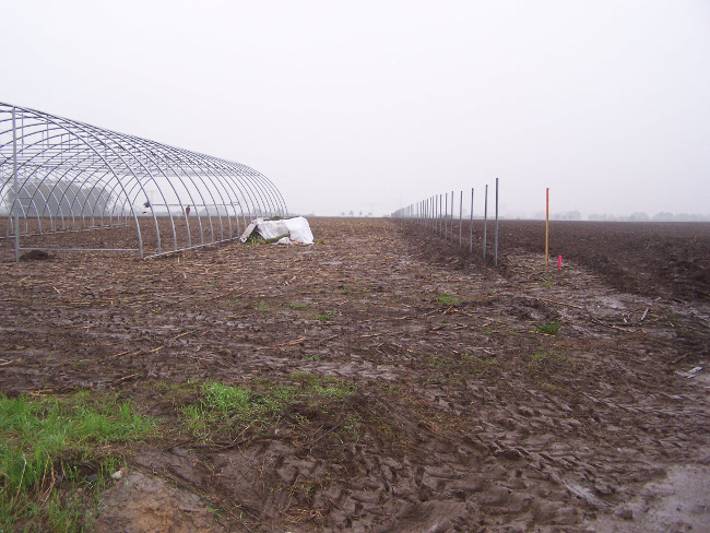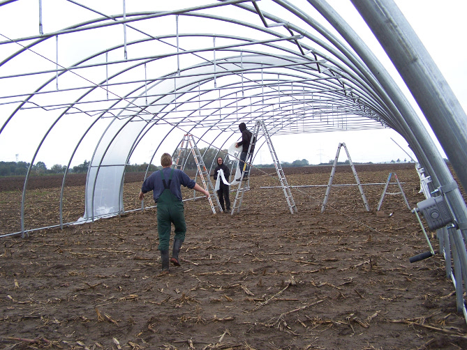 Winterroggen Erdbeerfeld Bautage Aufbau der Folientunnel